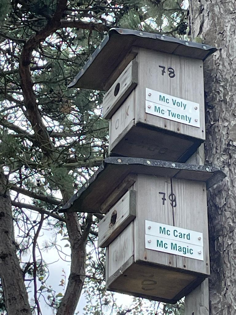 Bewohner jeden Nistkasten fein säuberlich